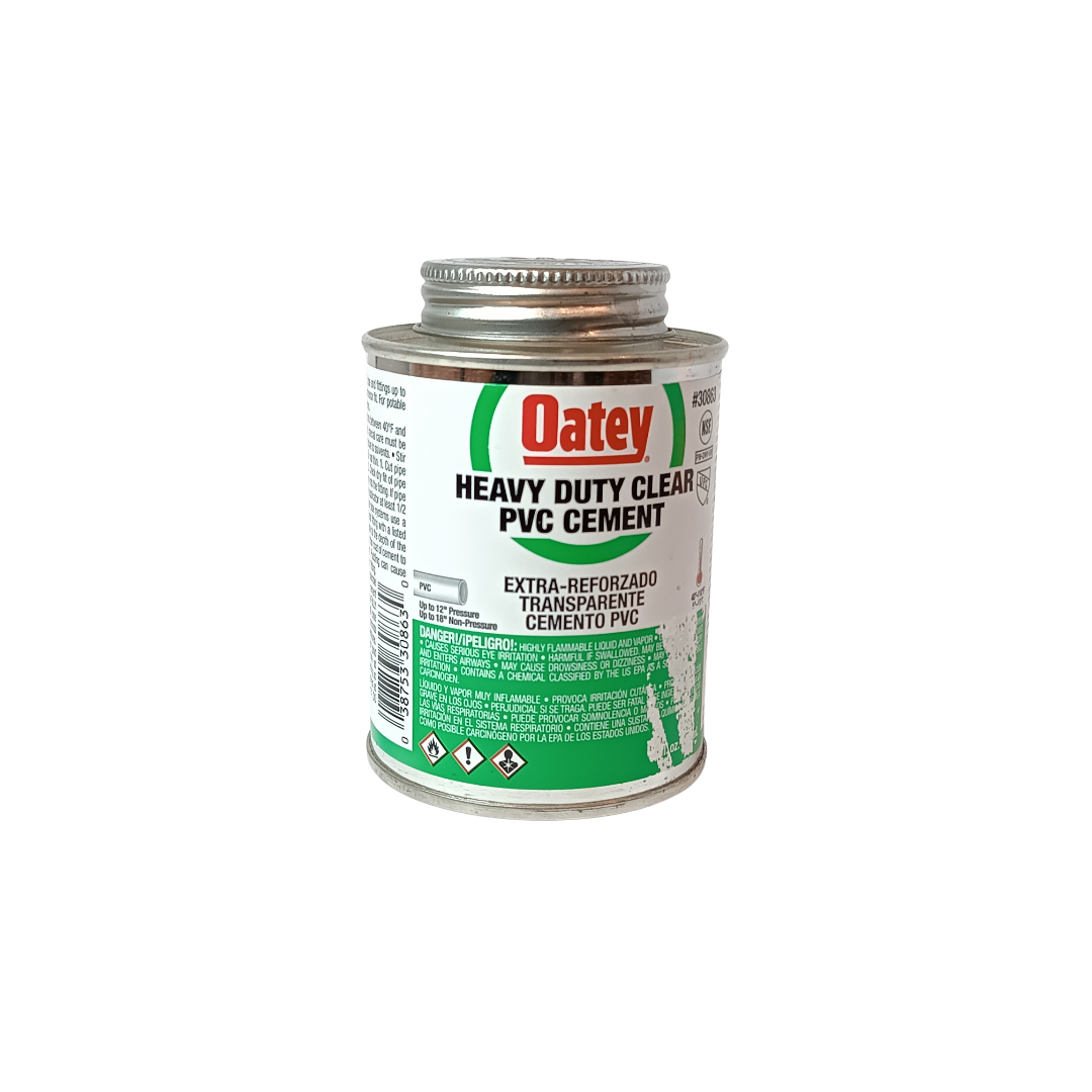 Oatey® PVC Heavy Duty Medium Set Clear Cement is recommended for use on all schedules and classes of PVC pipe and fitting up to 12 in. diameter with interference fit, up to 18 in. for non-pressure. Its thick formula fills gaps in large diameter pipe and fitting joints. Oatey products have earned the trust of plumbing professionals for over 100 years.